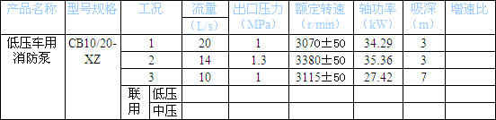 水罐容量(l):2000 CB10/20消防泵工況性能參數(shù)表