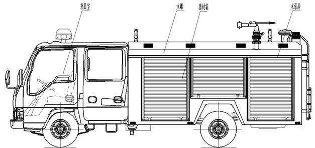 總體布置 | 整車由消防員乘員室和車身兩大部分組成,車身布置采用整體框架式結(jié)構(gòu),內(nèi)藏水罐,兩邊為器材箱,后部為水泵房,罐體為平行長方體廂式容罐。 |