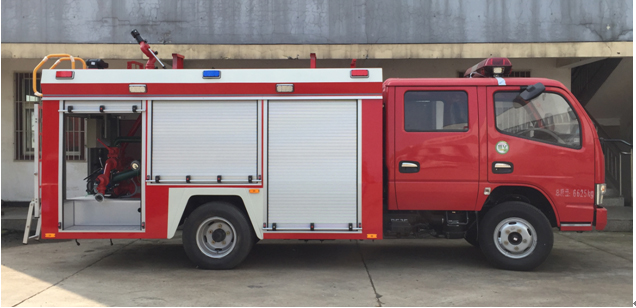 JDF5073GXFSG20/B型水罐消防車,采用東風EQ1070DJ3BDF底盤改裝而成。整車由消防員乘員室和車身兩大部分組成,乘員室為原裝雙排,可乘坐2+3人,該車為內(nèi)倉罐結(jié)構(gòu),車身前部為水罐+器材箱,后部為泵房。載液罐體為優(yōu)質(zhì)碳鋼,與底盤采用彈性連接,載水2030kg,裝備了上海雄真消防設(shè)備有限公司生產(chǎn)CB10/20-XZ型消防泵,額定流量20L/S,車頂安裝成都威斯特消防機械有限公司生產(chǎn)的PS20W型車用消防炮。該車最大的特點是機動靈活、操控性好、維修簡便??蓮V泛應(yīng)用于公安消防隊、廠礦企業(yè)及社區(qū)、碼頭等場所,撲救一般物質(zhì)火災。