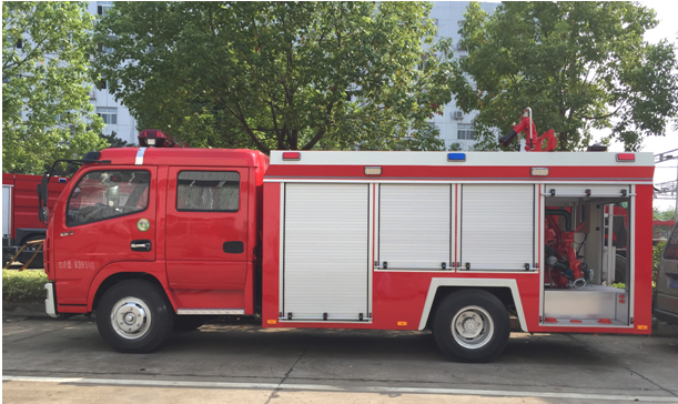 JDF5080GXFSG30/A型水罐消防車(chē),采用東風(fēng)EQ1090SJ8BDC底盤(pán)改裝而成。整車(chē)由消防員乘員室和車(chē)身兩大部分組成,乘員室為原裝雙排,可乘坐2+3人,該車(chē)為內(nèi)倉(cāng)罐結(jié)構(gòu),車(chē)身前部為水罐+器材箱,后部為泵房。載液罐體為優(yōu)質(zhì)碳鋼,與底盤(pán)采用彈性連接,載水2600kg,裝備了上海雄真消防設(shè)備有限公司生產(chǎn)CB10/30-XZ型消防泵,額定流量30L/S,車(chē)頂安裝成都威斯特消防機(jī)械有限公司生產(chǎn)的PS30W型車(chē)用消防炮。該車(chē)最大的特點(diǎn)是機(jī)動(dòng)靈活、操控性好、維修簡(jiǎn)便??蓮V泛應(yīng)用于公安消防隊(duì)、廠(chǎng)礦企業(yè)及社區(qū)、碼頭等場(chǎng)所,撲救一般物質(zhì)火災(zāi)。