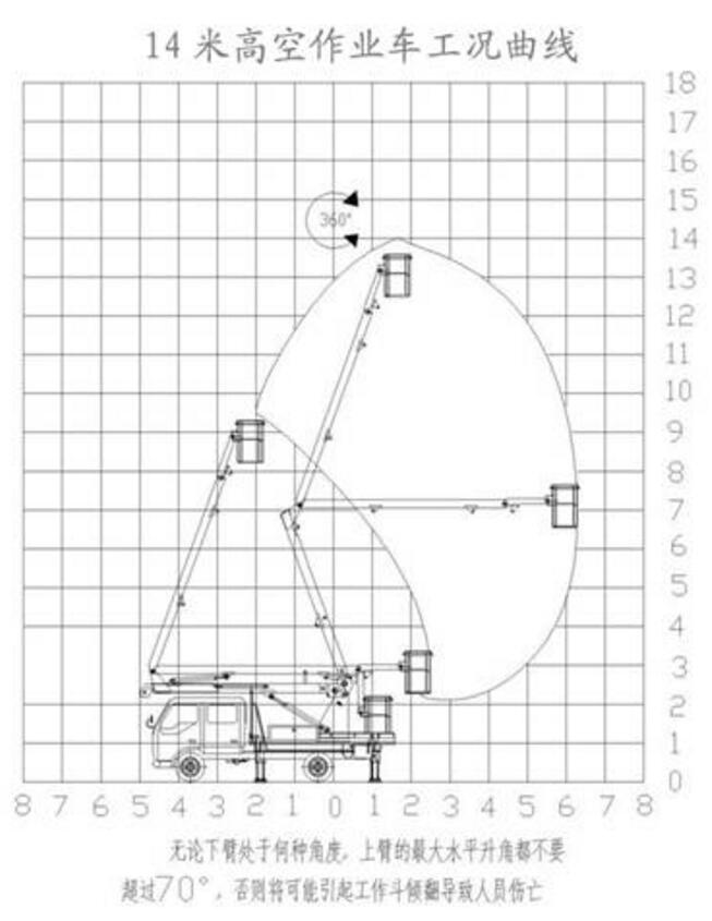 東風(fēng)凱普特14米高空車,最大作業(yè)高度14m,最大作業(yè)高度時(shí)作業(yè)幅度2m,最大作業(yè)幅度6.3m,最大作業(yè)幅度時(shí)作業(yè)高度8m,雙向360°連續(xù)回轉(zhuǎn)。