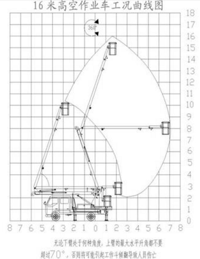 東風(fēng)凱普特16米高空車,最大作業(yè)高度16m,最大作業(yè)高度時(shí)作業(yè)幅度2m,最大作業(yè)幅度7m,最大作業(yè)幅度時(shí)作業(yè)高度9m,雙向360°連續(xù)回轉(zhuǎn)
