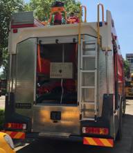 車身兩側(cè)安裝紅、藍(lán)兩色頻閃燈,上裝后部安裝35W消防探照燈1個(gè)火場照明 |