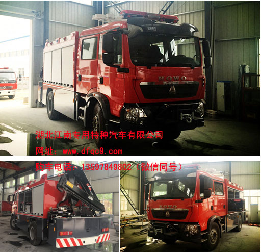 重汽T5G搶險救援消防車專用配置說明:(前拖、后吊、升降照明+多功能器材廂)